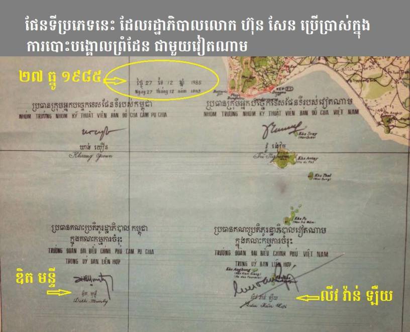 លោកនាយករដ្ឋមន្ត្រី ហ៊ុន សែន កាលពីថ្ងៃទី២៣ ខែវិច្ឆិកាកន្លងទៅ បានឯកភាពគ្នា ជាមួយ នាយករដ្ឋមន្ត្រីវៀតណាម លោក ង្វៀន សួនហ្វ៊ុក ទៅលើការផ្ទេរខ្នាតផែនទី ១/១០០.០០០ ទៅ ផែនទីខ្នាត ១/៥០.០០០ វិញ។