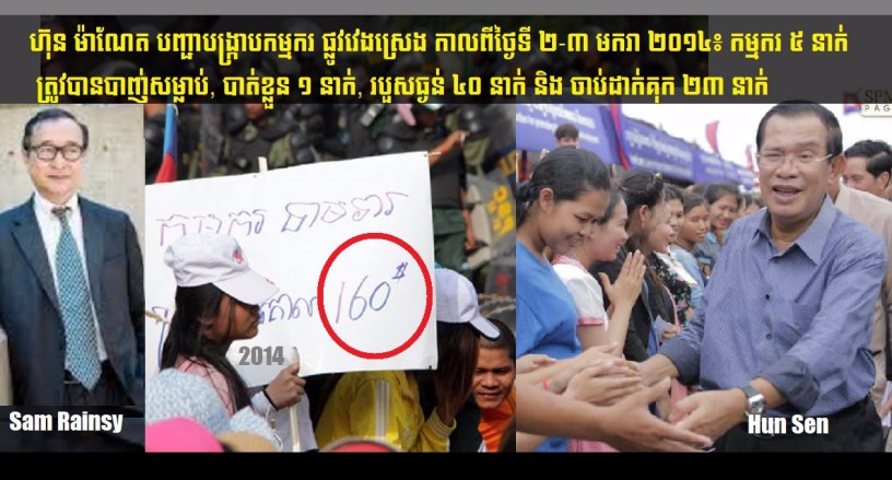 រំលឹក៖ ព្រឹត្តិការណ៍ផ្លូវវេងស្រេង៖ រដ្ឋាភិបាល ហ៊ុន សែន បញ្ជាកងកម្លាំង បាញ់បង្ក្រាបកម្មករ ផ្លូវវេងស្រេង កាលពីថ្ងៃទី ២-៣ មករា ២០១៤ គឺកម្មករ ៥ នាក់ ត្រូវបានបាញ់សម្លាប់, បាត់ខ្លួន ១ នាក់, របួសធ្ងន់ ៤០ នាក់ និង ចាប់ដាក់គុក ២៣ នាក់។ ជនរងគ្រោះ និងក្រុមគ្រួសារជនរងគ្រោះ គ្មានទាន់បានទទួលយុត្តិធម៌នៅឡើយទេ។ (អត្ថបទដោយ ម៉ែន ណាត)