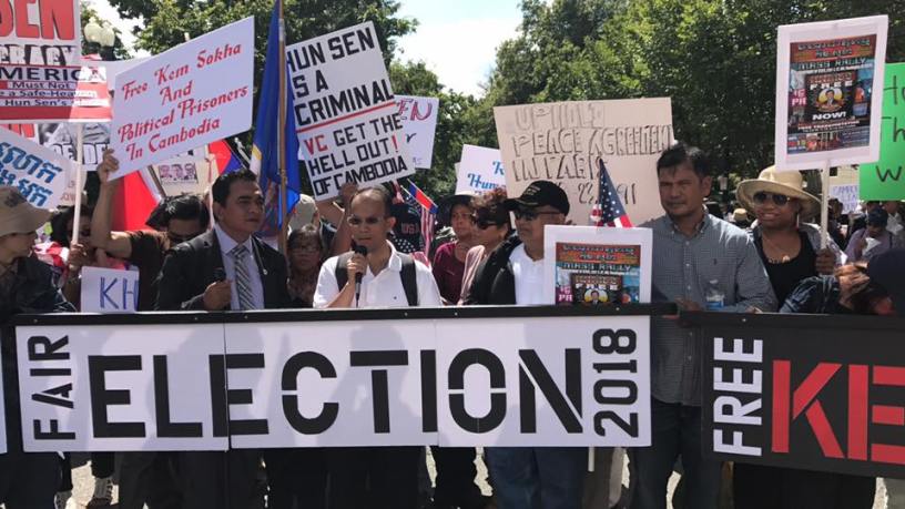 វ៉ាស៊ីនតោន — ក្រុមតំណាងពលរដ្ឋខ្មែរអាមេរិកាំងជាច្រើន មកពីតាមបណ្តារដ្ឋនានា បានមកប្រមូលផ្តុំគ្នា នៅមុខក្រសួងការបរទេសអាមេរិក កាលថ្ងៃសុក្រ (១៥ កញ្ញា ២០១៧) ដើម្បីបញ្ចេញកំហឹង តវ៉ានឹងការធ្វើទុក្ខបុកម្នេញនយោបាយ ក្នុងប្រទេសកម្ពុជា ជាប្រទេសកំណើតរបស់ពួកគេ ក្រោយពីលោកនាយករដ្ឋមន្ត្រី ហ៊ុន សែន បញ្ជាឲ្យចាប់ខ្លួនលោក កឹម សុខា មេដឹកនាំក្រុមជំទាស់ បិទបណ្តាញព័ត៌មាន និងបណ្តេញអង្គការឯករាជ្យ មុនការបោះឆ្នោតជាតិ ឆ្នាំ២០១៨។