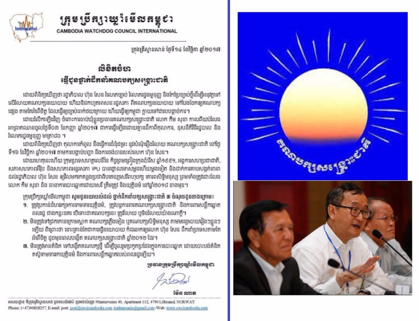 លិខិតចំហនៃ ក្រុមប្រឹក្សាឃ្លាំមើលកម្ពុជា ផ្ញើជូនថ្នាក់ដឹកនាំគណបក្សសង្គ្រោះជាតិ