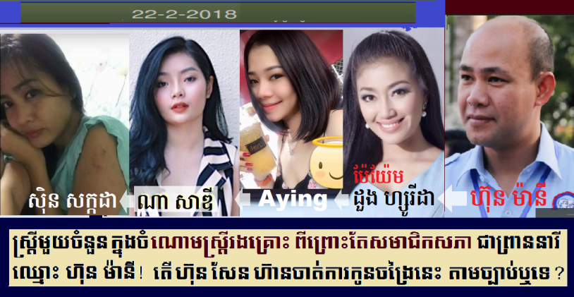 ដើម្បីទាមទារយុត្តិធម៌ ទាមទារការបង់ទឹកចិត្ត និងការខាតបង់នានាមកវិញ សូមស្រ្តីរងគ្រោះទាំងឡាយ ដែលត្រូវអ្នកតំណាងរាស្រ្ត ហ៊ុន ម៉ានី ជាកូនរបស់លោក ហ៊ុន សែន បានបំពានលើសេចក្តីទុកចិត្ត កេងប្រវញ្ចផ្លូវភេទ និងបំផ្លាញសេចក្តីថ្លៃថ្នូរនានា ព្រមទាំងគេចពីការទទួលខុសត្រូវ សូមមានសេចក្តីក្លាហានចេញមកបកស្រាយ និងទាមទារយុត្តិធម៌ ចំពោះករណីអំពើថោកទាបរបស់លោក ហ៊ុន ម៉ានី ដែលសង្គមស្អប់ខ្ពើមផងនេោះ។