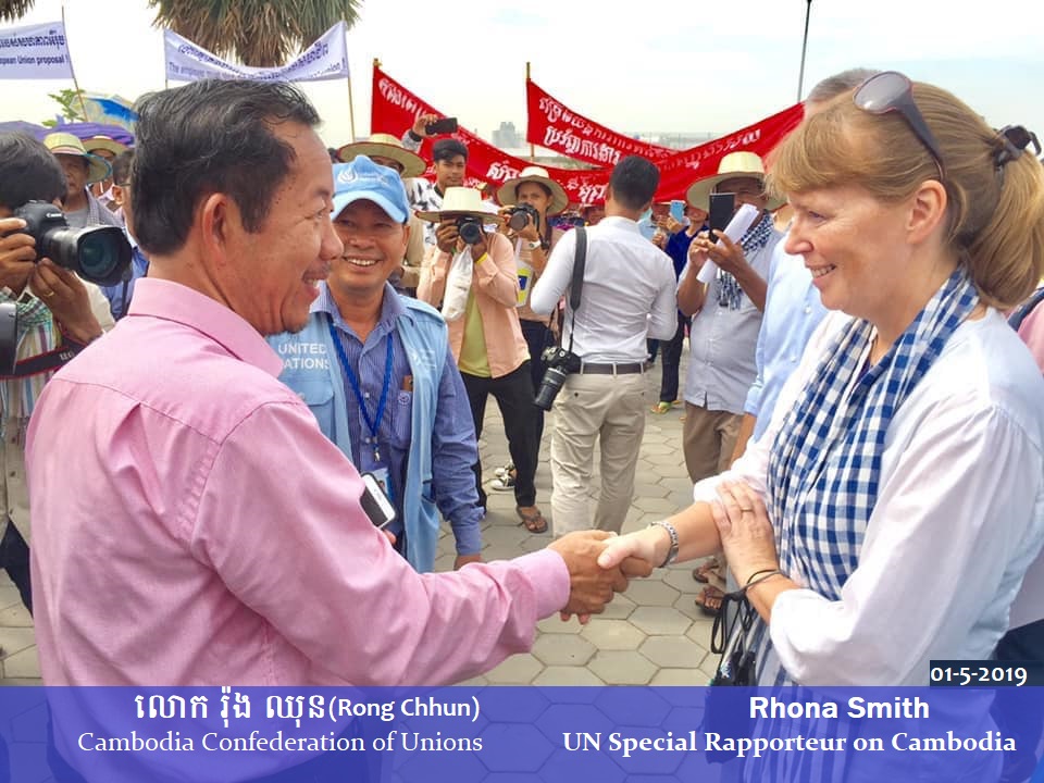 ភ្នំពេញ — អ្នករាយការណ៍ពិសេសរបស់អង្គការសហប្រជាជាតិទទួលបន្ទុកសិទ្ធិមនុស្ស នៅកម្ពុជា លោកស្រី រ៉ូណា ស្មីត (Rhona Smith) បានថ្លែងក្រោយជំនួប ជាមួយរដ្ឋមន្ត្រីក្រសួងយុត្តិធម៌កម្ពុជា ក្នុងរាជធានីភ្នំពេញ នៅថ្ងៃព្រហស្បតិ៍នេះថា ប្រទេសកម្ពុជា បានទទួលយកកាតព្វកិច្ចគោរពសិទ្ធិមនុស្ស ដូចមានចែងក្នុងច្បាប់អន្តរជាតិនានា ជាមូលដ្ឋាន ហេតុដូច្នេះ រដ្ឋាភិបាលប្រទេសនេះ មានជម្រើសក្នុងការឆ្លើយតប ទៅនឹងដៃគូពាណិជ្ជកម្ម លើបញ្ហាការគោរពសិទ្ធិមនុស្ស និងការរក្សាទុកកិច្ចព្រមព្រៀងពាណិជ្ជកម្មទាំងឡាយ ដែលកម្ពុជាទទួលបាន។