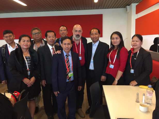 ក្រុមមន្រ្តីសហជីពពីប្រទេសកម្ពុជា ដែលគាំទ្ររដ្ឋាភិបាល និង សហជីពឯករាជ្យ មានសមាសភាពជិត ១០ រូបរួមមានលោក រ៉ុង ឈុន, លោក វន់ ពៅ ប្រធានសមាគមសេដ្ឋកិច្ចក្រៅប្រព័ន្ធ, លោក អាត់ ធន់ ប្រធានសហភាពការងារកម្ពុជា, លោក ជួន មុំថុល សហជីពរបស់រដ្ឋាភិបាល និងមន្រ្តីសហជីពអមដំណើរមួយចំនួនទៀត ចូលរួមក្នុងសន្និសីទអន្តរជាតិនេះ។