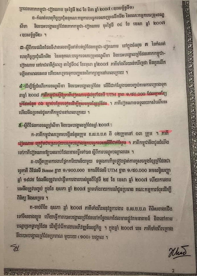 អតីតសមាជិកសភា និងជាសកម្មជនព្រំដែនខ្មែរ លោក អ៊ុំ សំអាន ផ្សព្វផ្សាយឯកសារសម្ងាត់ ស្តីអំពីកំណត់ហេតុកិច្ចប្រជុំ ជុំវិញការកំណត់បង្គោលព្រំដែនខ្មែរ-យួន រវាង លោក វ៉ា គឹមហុង ទេសរដ្ឋមន្ត្រីទទួលបន្ទុកកិច្ចការព្រំដែន នៃរបបលោក ហ៊ុន សែន និង លោក វូ យុង អនុរដ្ឋមន្រ្តីក្រសួងការបរទេសវៀតណាម ទទួលបន្ទុកកិច្ចការព្រំដែន បានចុះហត្ថលេខារួមគ្នា កាលពីថ្ងៃទី០៧ ខែមេសា ឆ្នាំ២០០៧។