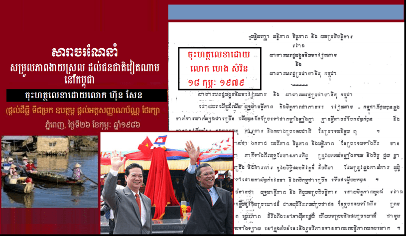 – សារាចរណ៍ណែនាំ ថ្ងៃទី ២៦ កុម្ភៈ ឆ្នាំ១៩៨៦ ចុះហត្ថលេខាដោយលោក ហ៊ុន សែន បានផ្តល់សិទ្ធិ និងជួយការពារពលរដ្ឋវៀតណាមខុសច្បាប់ នៅកម្ពុជា (Download)