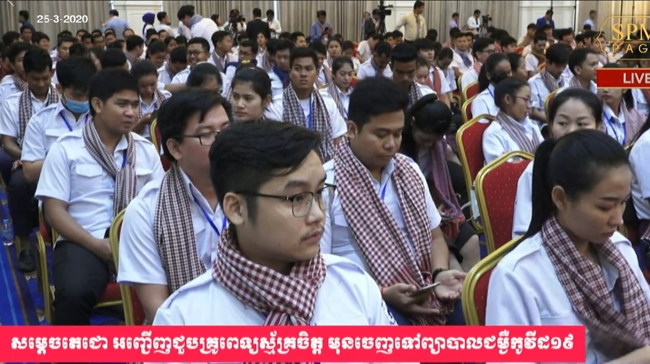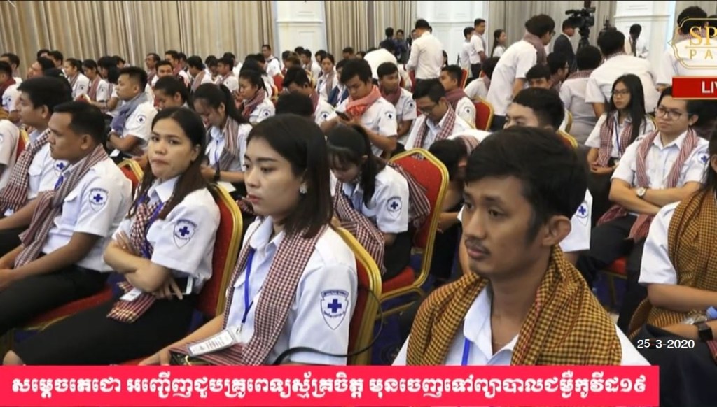 ខាងក្រោមនេះ ជារូបភាពមួយចំនួន ក្នុងពិធីសំណេះសំណាលរបស់លោក ហ៊ុន សែន ជាមួយក្រុមគ្រូពេទ្យស្មគ្រចិត្ត ជាង ៤០០ នាក់ នាថ្ងៃទី ២៥ មីនា ២០២០ ក្នុងស្ថានភាពកម្ពុជា កំពុងជួបហានីភ័យរឿងមេរោគកូរ៉ូណា។