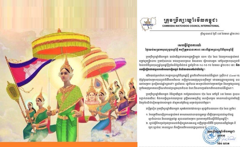 ក្រុមប្រឹក្សាឃ្លាំមើលកម្ពុជា យល់ឃើញថានាយករដ្ឋមន្រ្តីកម្ពុជា លោក ហ៊ុន សែន ដែលប្រកាសផ្ទាល់មាត់ តម្រូវឲ្យមន្ត្រីរាជការ ក្រុមហ៊ុនឯកជន រោងចក្រសហគ្រាស និងធនាគារ ធ្វើការជាធម្មតា នៅថ្ងៃសម្រាកបុណ្យជាតិ ដែលជាពិធីចូលបុណ្យចូលឆ្នាំថ្មីប្រពៃណីខ្មែរដ៏សំខាន់ ក្នុងថ្ងៃទី ១៣-១៤-១៥-១៦ ខែមេសា ឆ្នាំ២០២០ នោះ គឺជាការធ្វើឡើងដោយគ្មានការពិចារណាល្អិតល្អន់ និងនិយាយតាមតែទំនើងចិត្ត។