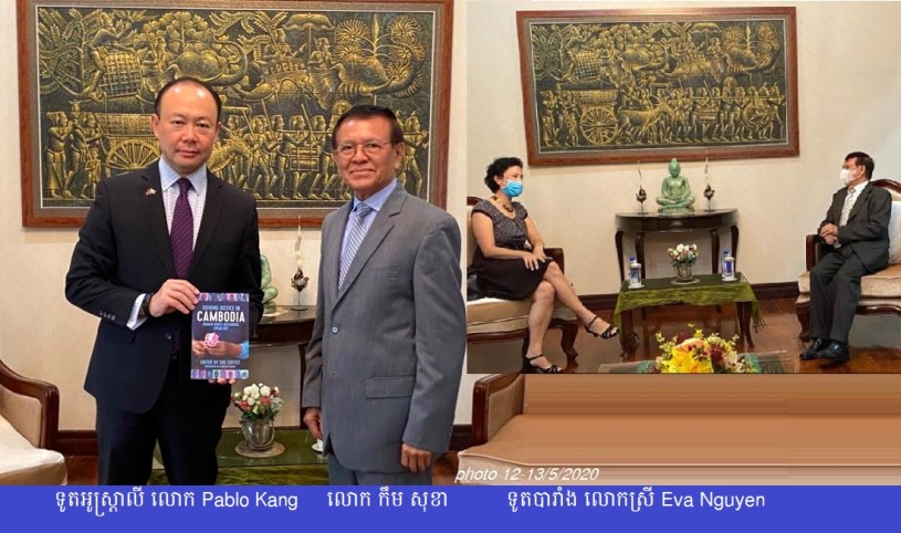លោក កឹម សុខា មេដឹកនាំបក្សសង្គ្រោះជាតិ បានទទួលជួបសំណេះសំណាល ជាមួយអគ្គរដ្ឋទូតអូស្រ្តាលី ប្រចាំកម្ពុជា នៅព្រឹកថ្ងៃទី ១៣ ខែឧសភា ឆ្នាំ២០២០ នៅគេហដ្ឋានរបស់លោក ក្នុងទីក្រុងភ្នំពេញ។ នេះបើតាមទំព័រហ្វេសប៊ុករបស់លោក កឹម សុខា ផ្ទាល់។ លោកបានសរសេរ និងបង្ហោះរូបថតមួយចំនួនថា «ខ្ញុំបានទទួលជួបជាមួយលោក ប៉ាប្លូ កង (Pablo Kang) ឯកអគ្គរាជទូតអូស្ត្រាលី ប្រចាំនៅព្រះរាជាណាចក្រកម្ពុជា ដែលជាប្រទេសប្រជាធិបតេយ្យមួយ នៅក្នុងតំបន់អាសុី ប៉ាសុីហ្វិក បន្ទាប់ពីខ្ញុំបានជួបជាមួយតំណាងប្រទេសនៅសហគមន៍អុឺរ៉ុប»។ លោកបន្តថា «ក្នុងជំនួបសួរសុខទុក្ខនោះ យើងបានពិភាក្សាគ្នា នូវកិច្ចការមួយចំនួនផងដែរ ដូចជាបញ្ហាសេដ្ឋកិច្ច សង្គម ជាពិសេសបញ្ហាប្រឈមនឹងជំងឺកូវីដ-១៩ និងបញ្ហាជីវភាពរបស់ប្រជាពលរដ្ឋ»។