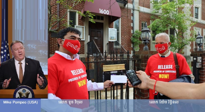 ក្រោយពលបញ្ចប់ការធ្វើបាតុកម្មនៅស្ថានទូតខ្មែរ នៅទីក្រុងវ៉ាស៊ីនតុន ក្នុងថ្ងៃទី២៨ ខែកញ្ញា ឆ្នាំ២០២០ ភ្លាមៗនោះ ពលរដ្ឋខ្មែរអាមេរិកាំង និងចលនានិស្សិតដើម្បីលទ្ធិប្រជាធិបតេយ្យ បានទៅសម្តែងមតិ រួចញត្តិជូនរដ្ឋមន្រ្តីក្រសួងការបរទេសអាមេរិក លោក ម៉ៃឃើល ផុមភេអូ នៅក្រសួងការបរទេសអាមេរិក ដើម្បីថ្លែងអំណរគុណសហរដ្ឋអាមេរិក ដែលបានជួយអន្តរាគមន៍ដាក់សម្ពាធឲ្យរដ្ឋាភិបាលលោក ហ៊ុន សែន ដោះលែងក្រុមសកម្មជនខ្មែរជាច្រើនរូប ដែលត្រូវបានចាប់ឃុំខ្លួន នៅក្នុងប្រទេសកម្ពុជា។