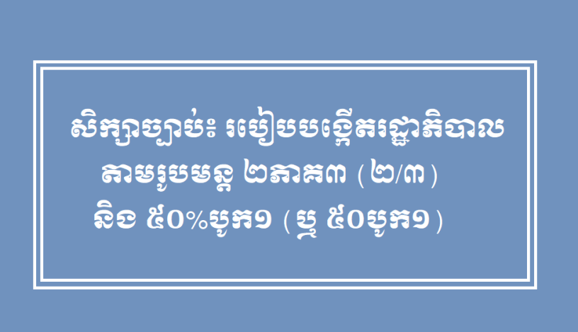 សិក្សាច្បាប់៖ របៀបបង្កើតរដ្ឋាភិបាលថ្មី តាមរូបមន្ត ២ភាគ៣ (២/៣) និង ៥០បូក១ (៥០%+១)