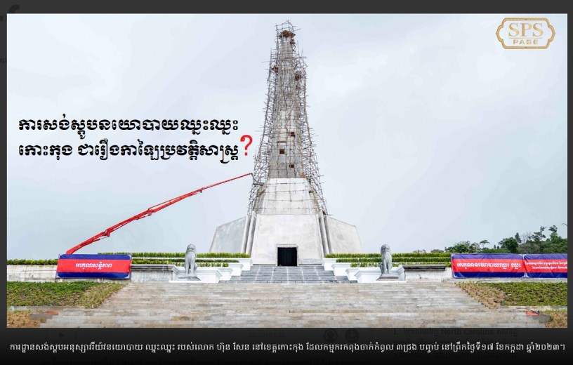 អ្នកវិភាគ លើកឡើងថា ការសង់ស្តូបនេះ ជាការចង់បង្ហាញឲ្យពលរដ្ឋ និងសហគមន៍អន្តរជាតិ មើលឃើញពីស្នាដៃរបស់គណបក្សកាន់អំណាច ដឹកនាំប្រទេស ទទួលបានជ័យជម្នះ ពីមួយដំណាក់កាលទៅមួយដំណាក់កាល ក្រោមរូបភាពគោលនយោបាយឈ្នះឈ្នះ របស់លោក ហ៊ុន សែន ដែលជាស្នាដៃមួយដ៏អាក្រក់ សម្រាប់បន្សល់ទុកឲ្យក្មេងជំនាន់ក្រោយ ថ្វីត្បិតនយោបាយឈ្នះឈ្នះនេះ ចែងអំពីខ្មែរគ្រប់ភាគីឈ្នះទាំងអស់គ្នាក្ដី ផ្ទុយទៅវិញនយោបាយនេះ បង្កប់នូវភាពពិសពុលកម្ទេចខ្មែរគ្នាឯង ធ្វើឲ្យក្រុមបក្សប្រឆាំង អ្នកមានមតិផ្ទុយពីរដ្ឋាភិបាល និងពលរដ្ឋរងគ្រោះដីធ្លីស្ទើរពេញមួយនគរ រងការឈឺចាប់ ក្រោមរូបភាពអភិវឌ្ឍន៍ផ្សេងៗ។ លើសពីនេះទៀត ក្រុមបក្សពួកលោក ហ៊ុន សែន ដែលជាអ្នកទទួលបានជ័យជម្នះនោះ រស់នៅលើទ្រព្យសម្បត្តិស្ដុកស្ដម្ភ តាមរយៈការប្រព្រឹត្តិអំពើពុករលួយ និងតួនាទី ឋានៈ បុណ្យស័ក្ដិ ដែលធ្វើឲ្យមានគម្លាតអ្នកមាន អ្នកក្រ កាន់តែឆ្ងាយដាច់ពីគ្នា និងអំពើអយុត្តិធម៌នៅក្នុងសង្គម៕