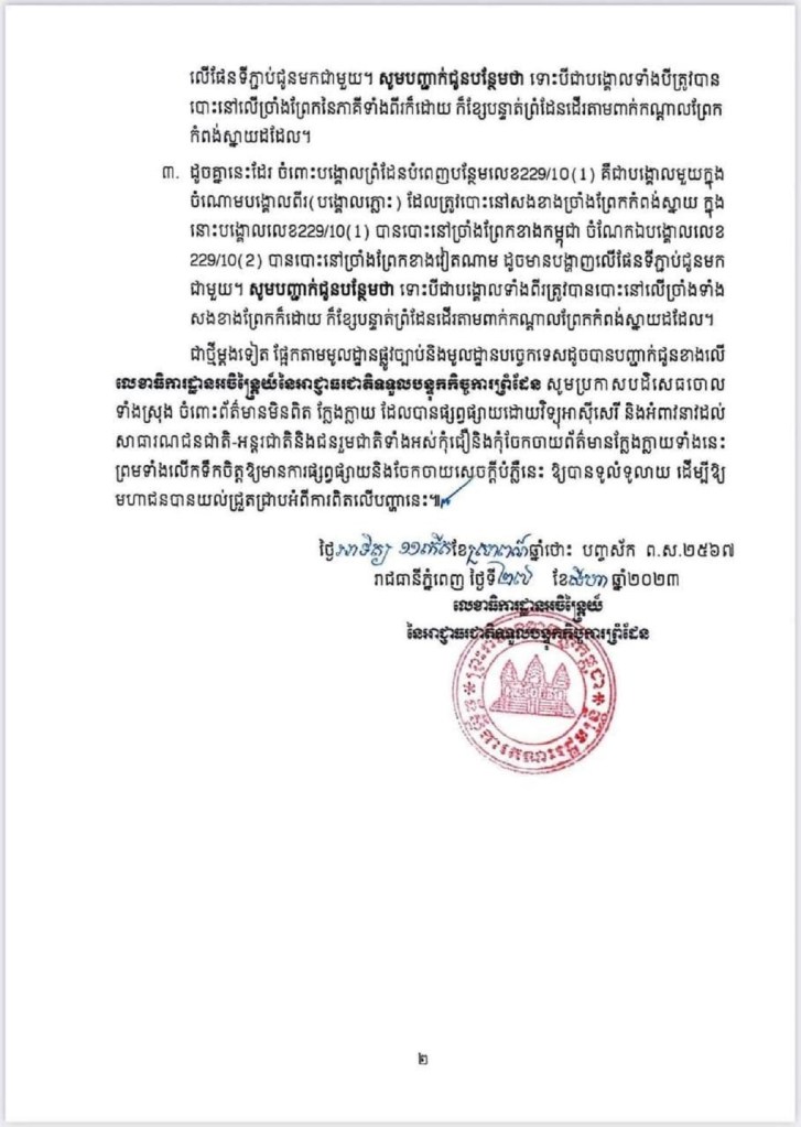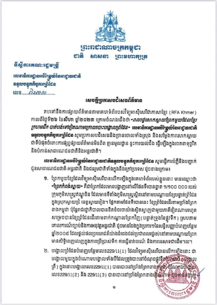 ខ្លឹមសារសំណេរខាងក្រោមនេះ គឺជាអត្ថបទឆ្លើយបំភ្លឺតបទៅកាន់អាជ្ញាធរជាតិទទួលបន្ទុកកិច្ចការព្រំដែន។