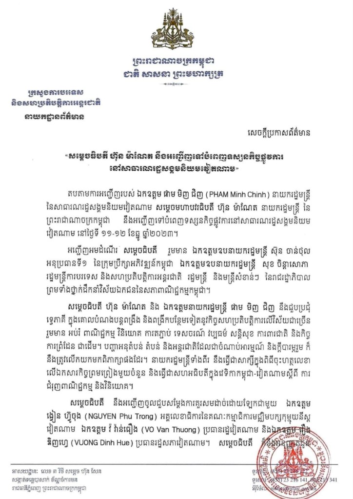 ខណៈនេះលោក ម៉ែន ណាត បានលើកឡើង ៣ ចំណុចទៅកាន់លោកនាយករដ្ឋមន្ត្រី ហ៊ុន ម៉ាណែត ដែលគ្រោងទៅទស្សនកិច្ចនៅទីក្រុងហាណូយ ប្រទេសវៀតណាម នៅថ្ងៃទី១១-១២ ខែធ្នូ ឆ្នាំ២០២៣។ សូមអានខ្លឹមសារអត្ថបទទាំងស្រុងរបស់លោក ម៉ែន ណាត ដូចខាងក្រោម៖