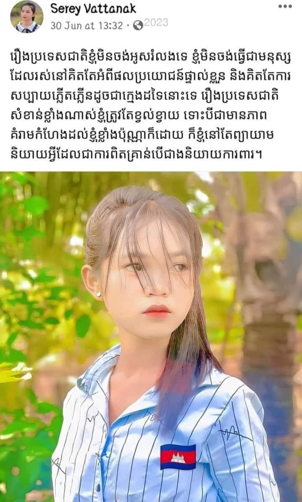 កញ្ញា វ៉ែន ស៊ាងឡៃ៖ «ខ្ញុំឃើញអ៊ីចឹង ចេះតែបង្ហោះទៅតាមរយៈការពិត អ្វីដែលខ្ញុំឃើញ ខ្ញុំតែងលើកយកមកនិយាយ។ ខ្ញុំក៏ព្រួយបារម្ភដែរ ហើយឃើញអ៊ីចឹង ខ្ញុំក៏មានអារម្មណ៍សោកស្ដាយដែរ ព្រោះខ្ញុំជាកូនខ្មែរមួយខ្ញុំក៏សោកស្ដាយដែរ»។