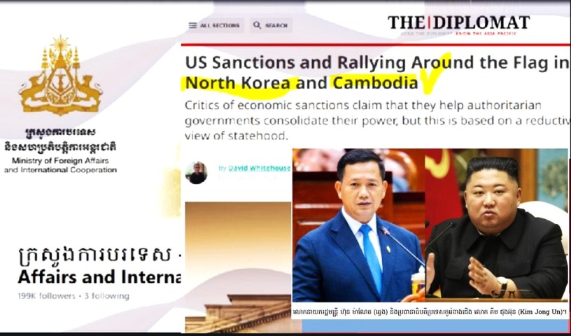 ក្រសួងការបរទេសកម្ពុជា ប្រតិកម្មទៅនឹងការចុះផ្សាយរបស់សារព័ត៌មាន ឌឹ ឌីប្លូមម៉ាត (The Diplomat) ថា របបដឹកនាំនៅកម្ពុជា និងនៅកូរ៉េខាងជើង ស័ក្តិសម រងទណ្ឌកម្មពីសហរដ្ឋអាមេរិកដូចគ្នា។ មន្ត្រីបក្សប្រឆាំង និងអ្នកឃ្លាំមើល គាំទ្របើសហរដ្ឋអាមេរិក និងសម្ព័ន្ធមិត្តដាក់ទណ្ឌកម្មឱ្យចំពោះបុគ្គល ដែលជាប់ពាក់ព័ន្ធនឹងការរំលោភសិទ្ធិមនុស្សធ្ងន់ធ្ងរ នៅកម្ពុជា។