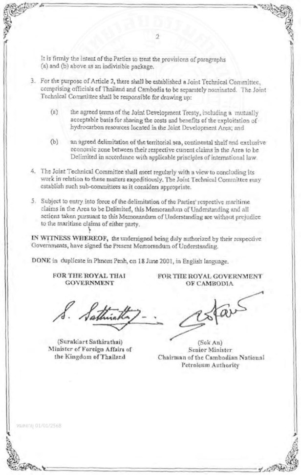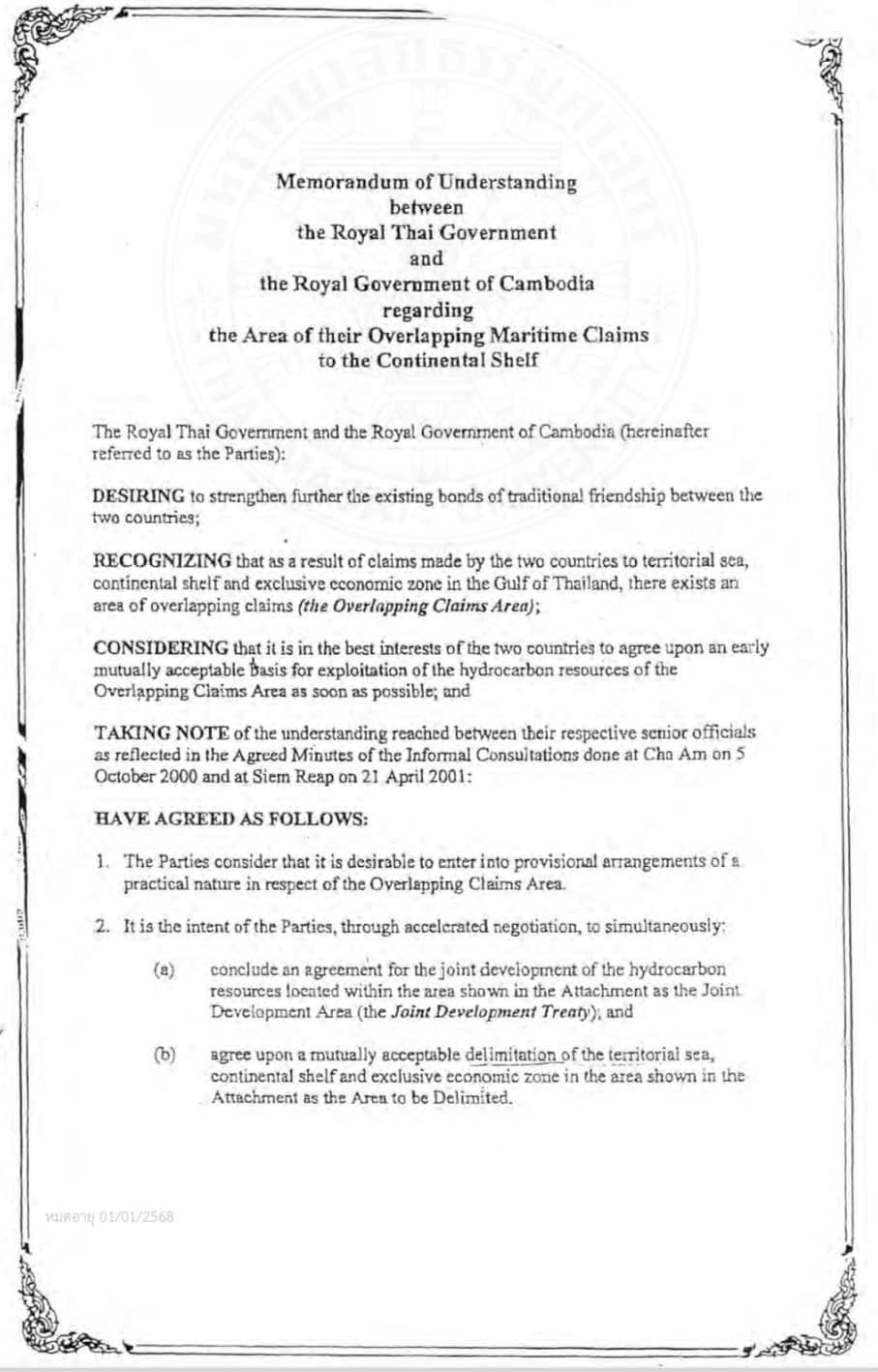 លោក ម៉ែន ណាត បានមានប្រសាសន៍បន្តថា «ហើយជាការពិតហើយ ដូចលោក ស៊ាន ប៉េងសែ គាត់ធ្លាប់បញ្ជាក់ជូនអ៊ីចឹង ឆ្នាំ២០០១ ដែល MOU ឆ្នាំ២០០១ ហ្នឹង របស់លោក សុខ អាន ក្នុងរដ្ឋាភិបាលលោក ហ៊ុន សែន ជាមួយថៃ ហ្នឹង បានធ្វើរួមគ្នារុករករ៉ែ ក្នុងបំណងរុករ៉ែដែនសមុទ្រ ហើយដល់ថៃ បង្ខំឲ្យខ្មែរ បោះបង់ កោះគុត។ ក្នុងផែនទីឧបសម្ព័ន្ធនៃ MOU ឆ្នាំ២០០១ ហ្នឹង គូសគំនូសឆ្វៀលកោះគុត ប៉ុន្តែជំហររដ្ឋាភិបាលកម្ពុជា គឺនៅរក្សាទាមទារស្របតាមក្រឹត្យរបស់ លន់ នល់ ដែរ។ ក្រឹត្យរបស់ លន់ នល់ ហ្នឹង យើងនិយាយឲ្យខ្លីទៅ គ្មានរដ្ឋាភិបាលខ្មែរ ណាមួយ តាំងពីសម័យបារាំង មកដល់បច្ចុប្បន្នហ្នឹង មិនបោះបង់ដែនសមុទ្រខ្មែរ ជាមួយថៃ ទេ។ ប៉ុន្តែគ្រាន់តែថា កំហុសឆ្គងមួយរបស់រដ្ឋាភិបាលកម្ពុជា ក្នុងឆ្នាំ២០០១ ហ្នឹង គូសគំនូសផែនទីភ្ជាប់តំបន់រុករករ៉ែហ្នឹង គូសឆ្វៀលកោះគុត ចេញ។ បានន័យថា កម្ពុជា ចង់បោះបង់ចោល កោះគុត។ អាកន្លែងហ្នឹងហើយ ដែលវាមិនសមស្របទៅតាមអ្វីដែលយើងចង់បាន ហើយមិនសមស្របនូវអ្វីដែលខាងគណៈកម្មការព្រំដែនប្រទេសបារាំង ដែលមានលោក ស៊ាន ប៉េងសែ ជាប្រធានកាលណោះហ្នឹង ចង់បានដែរ។ អ៊ីចឹង បានជាបន្តបន្ទាប់មក ពួកយើងហ្នឹងទាមទារជំរុញឲ្យលុបចោល MOU ហ្នឹង ព្រោះ MOU ហ្នឹង វាអត់មានបានចំណេញផលប្រយោជន៍អីដល់ខ្មែរ ទេ ហើយម្យ៉ាងទៀត ពួកយើងក៏ជំរុញឲ្យមានការវាស់វែងបន្ទាត់ព្រដែនជាមួយថៃ ហ្នឹងជាមុន ត្រូវវាស់វែងដែនសមុទ្រឲ្យហើយ កំណត់ដែនសមុទ្រឲ្យហើយ សឹមគិតគូររឿងរុករករ៉ែរួមគ្នា។ ហើយកាលណាយើងកំណត់ព្រំដែន ដាច់ខាតយើងត្រូវយកសន្ធិសញ្ញាបារាំង-សៀម ហ្នឹងមកធ្វើជាមូលដ្ឋានក្នុងការដោះស្រាយដែនសមុទ្រ ហើយមិនអាចដោះស្រាយទ្វេភាគីទេ ពីព្រោះថា កោះគុត សព្វថ្ងៃហ្នឹង ថៃ កាន់កាប់មួយរយភាគរយហើយ។ ដូច្នេះរដ្ឋាភិបាលកម្ពុជា តវ៉ា មានតែតវ៉ានៅលើតុលាការអន្តរជាតិទេ ដូចករណីដែលយើងមានពិសោធន៍មួយល្អ គឺយើងប្ដឹងផ្ដល់ទៅតុលាការអន្តរជាតិ ដូចជាករណីប្រាសាទព្រះវិហារ។ ជាការពិតហើយ កាលជំនាន់ប្រាសាទព្រះវិហារ ឆ្នាំ១៩៥៤ ហ្នឹង សៀម យកកងទ័ពមកដាក់ពេញហ្នឹង មកត្រួតត្រាប្រាសាទព្រះវិហារ ទាំងស្រុង រហូតដល់ឆ្នាំ១៩៥៩ បានសម្ដេច {នរោត្តម} សីហនុ សម្រេចចិត្តប្ដឹង។ មានន័យថា តវ៉ាទ្វេភាគីហ្នឹង ថៃ នៅតែមិនឲ្យ អ៊ីចឹងសម្ដេច សីហនុ ប្ដឹងទៅតុលាការយុត្តិធម៌អន្តរជាតិ (ICJ) ហ្នឹង។ ប្ដឹងទៅ ICJ ហើយ បាន៣ឆ្នាំក្រោយមក ទើបយើងឈ្នះក្ដី ហើយបទពិសោធន៍ក្នុងរឿងប្រាសាទព្រះវិហារ សៀម ដណ្ដើមកាន់កាប់ស្របតាមមាត្រាទី១ នៃសន្ធិសញ្ញាបារាំង-សៀម ឆ្នាំ១៩០៤ ដល់បារាំង កាត់ក្ដីឲ្យខ្មែរ ឈ្នះឆ្នាំ១៩៦២ ស្របតាមប្រការ២ នៃសន្ធិសញ្ញាបារាំង-សៀម ឆ្នាំ១៩៥៧ ដែលមានអនុសញ្ញា អនុប្រការទី១ ហើយនិងមានកំណត់ដោយគណៈកម្មការកំណត់ព្រំដែនអីហ្