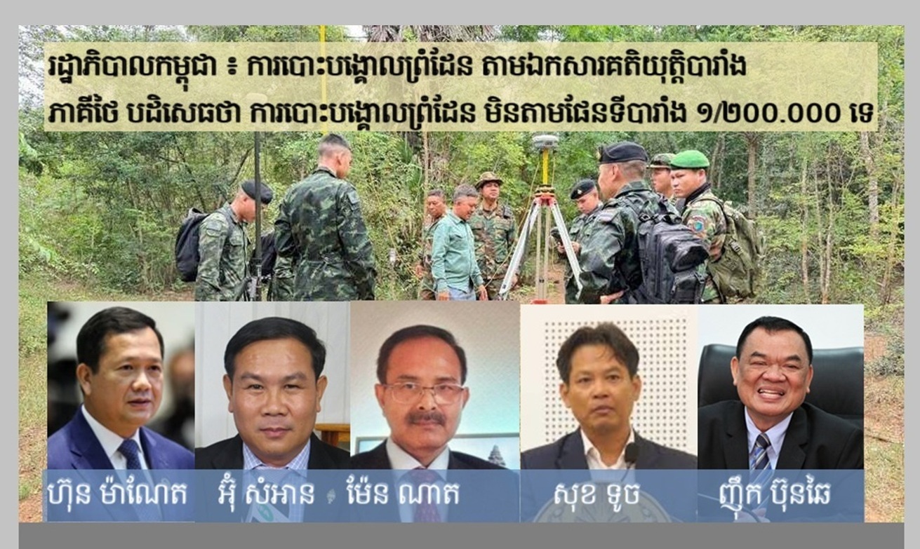 ក្នុងនោះ លោក ស្រ៊ឺ បូរ៉ា អគ្គនាយកបច្ចេកទេសកិច្ចការព្រំដែន បកស្រាយថា ការបោះបង្គោះព្រំដែនបណ្តោះអាសន្នជាមួយថៃ គឺយោងតាមឯកសារបារាំង-សៀម ឆ្នាំ១៩០៤-១៩០៧ ព្រមទាំងកំណត់ហេតុបោះបង្គោលព្រំដែន ឆ្នាំ១៩០៨-១៩០៩ និងឆ្នាំ១៩១៩-១៩២០ ជាឯកសារអន្តរជាតិទទួលស្គាល់។